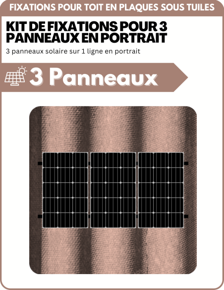 Kit de Fixation 3 panneaux solaire pour toit en plaques sous tuiles (PST) | Orientation : Portrait