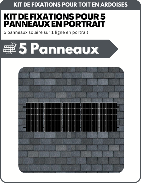 Kit de Fixation 5 panneaux solaires pour toit en ardoises | Orientation : Portrait