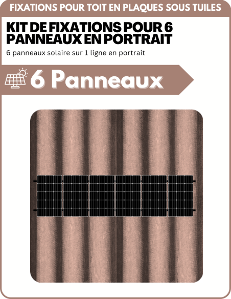 Kit de Fixation 6 panneaux solaire pour toit en plaques sous tuiles (PST) | Orientation : Portrait