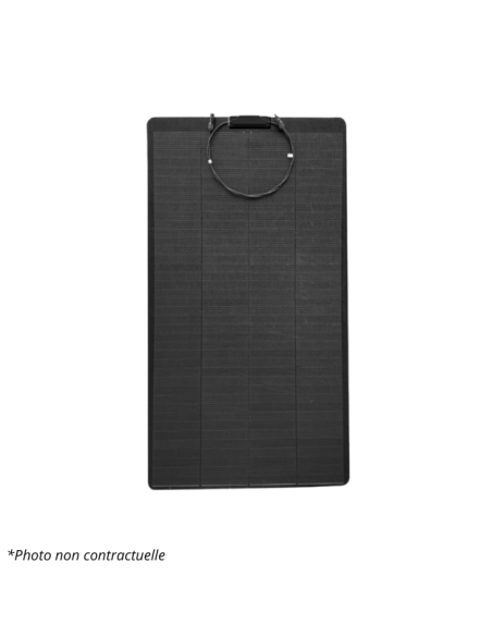 Panneau solaire ultra-léger et flexible de dernière génération, conçu spécialement pour les fourgons, camping-cars et bateaux où la hauteur et le poids sont limités. Revêtement ETP pour une meilleure résistance à la chaleur. Boitier de connexion étanche avec diodes haute performance pour optimiser la production par faible ensoleillement. Montage en série ou en parallèle possible et illimité. Des oeillets peuvent être posés dans les coins pour une utilisation sur bateau par exemple (non inclus) Connexion et installation facile Son boitier de jonction situé sur la face avant, des câbles d’une longueur de 70 cm et des connecteurs MC4 étanches vous permettront une installation et une connexion facile, et adapté pour une utilisation à l’extérieur.  Le panneau solaire souple peut être collé où vous voulez. Grâce à la boîte de jonction montée à l’avant, les modules peuvent être collés sur presque toutes les surfaces. Grâce aux diodes de dérivation intégrées dans la boîte de jonction, le module peut continuer à produire de l’électricité même en cas d’ombre ou de faible luminosité. L’installation est très simple : avec une colle spéciale  ( Sikaflex 522 CARAVAN par exemple ), les modules sont collés rapidement et facilement. Pour le collage, faire un cordon (~1cm) continu tout le tour du panneau, jamais de points de colle qui pourraient endommager les cellules photovoltaïques. Le panneau ne doit jamais être posé en contact direct sur une surface inflammable (bâche, plastique, tissu, etc). Un autre avantage est le faible poids des modules et la forme aérodynamiques qui font que la prise du vent est beaucoup moins importante que les panneaux solaires normaux. Caractéristiques techniques : Puissance nominale 100W Type de cellules Monocrystallines Efficacité 17.76% Courant max (Imp) 5.04A Voltage max (Vmp) 19.86V Voltage circuit ouvert (Voc) 23.70V Voltage court-circuit (ISC) 5.34A Tolérance Sortie +3% Câble 700mm / 2.5mm2 Connecteurs MC4 / MC4 Compatible Structure TPT / EVA / Backsheet Indice de protection ≥IP67 Nombre de diodes 1 Température de fonctionnement -20℃~+65℃